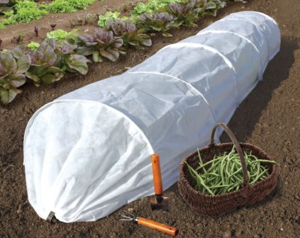 저밀도 백색 피복재는 심은 작물을 봄 서리로부터 보호하는 데 적합합니다. 습기와 빛은 쉽게 통과시키지만 해충과 곤충의 서식지를 제공하지 않습니다. 수확 시기가 빨라집니다. 이 소재는 고온성 관목과 포도송이를 덮는 데 사용됩니다. 자외선 차단 기능이 있는 고밀도 농업용 섬유도 판매되며, 온실과 온실에서 사용됩니다.