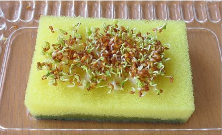 - 침지 - 씨앗은 영양 혼합물로 처리한 후 헹구거나 말리지 않고도 침지할 수 있습니다. 무명천을 준비하고 그 위에 씨앗을 펼쳐 놓습니다. 이제 무명천을 접어 씨앗이 모두 안에 들어가도록 합니다. 가능하면 씨앗이 서로 닿지 않도록 합니다. 씨앗 묶음을 물에 적셔 접시에 놓고 투명한 봉지에 넣어 공기를 가둡니다.