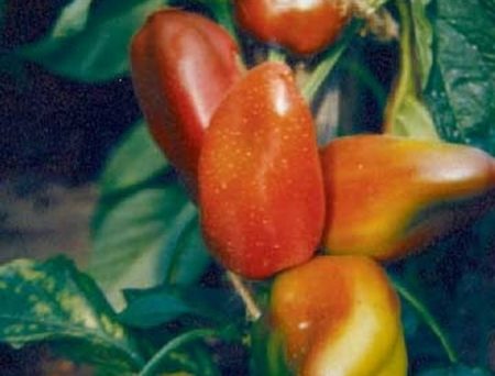 병충해에 강한 품종입니다. 남부 지역을 제외하고는 노지에서 재배하는 것은 매우 바람직하지 않습니다. 나무는 빽빽하게 자라며, 키가 50cm를 넘지 않고 가지런합니다. 열매는 두꺼운 벽을 가진 길쭉한 직육면체 모양의 붉은색이며, 무게는 100~150g입니다. 과육은 약간 섬유질이 많고 즙이 많으며, 맛이 좋으며, 특유의 후추 향이 납니다. 수확량은 최대 7kg/m²입니다.