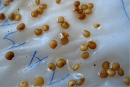 흙이 담긴 준비된 용기에 씨앗을 1cm, 5cm 또는 2cm 간격으로 심습니다. 이제 묘목 위에 1cm 두께의 흙을 덮고, 상온의 침전물을 뿌립니다. 파종 후, 용기를 투명한 천으로 덮고 따뜻한 곳(25~27°C)에 둡니다.