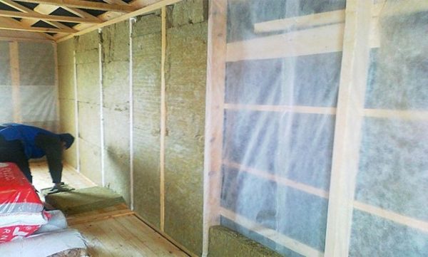 설치는 "습식" 방식보다 기술적으로 간단합니다. 목재, 슬랫 또는 강철 프로파일을 사용하여 프레임(덮개)을 만듭니다. 설치 전 목재 표면에 항진균제와 살충제를 처리합니다. 에멀젼이 완전히 건조되면 방수 필름을 건축용 스테이플러로 부착하고 이음매를 겹쳐 붙입니다. 이 소재는 매끈한 면과 보풀이 있는 면을 가지고 있습니다. 습기가 침투하지 않고 흡수되도록 광택 면이 바깥쪽을 향하도록 설치합니다.