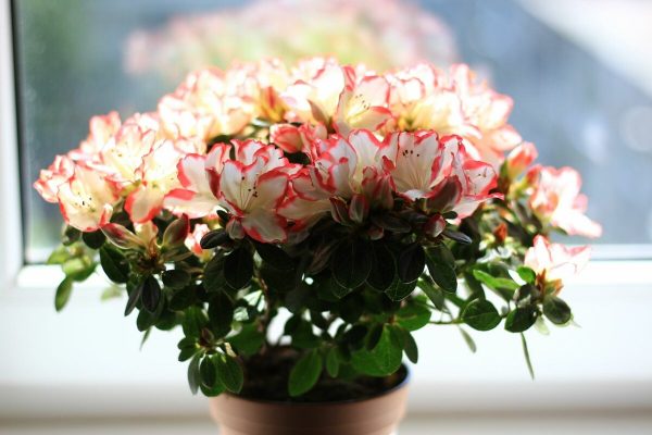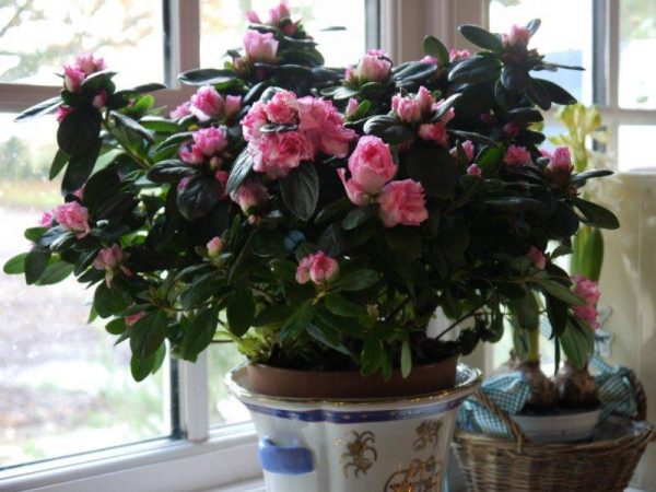 개화 기간 동안 식물을 적절히 관리하려면 온도 체계를 유지하는 것이 필요합니다. — 방은 시원하게 유지해야 합니다. 이 식물은 다른 식물과 달리 꽃이 핀 진달래가 담긴 화분을 다른 곳으로 옮겨도 꽃봉오리가 손상되지 않습니다. 꽃이 피면 가지를 지지대로 받쳐줄 수 있습니다.
