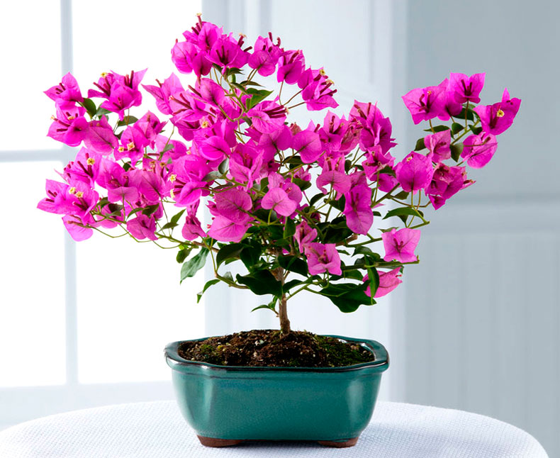 부겐빌레아는 열대 지방의 기후에 가까운 환경을 조성해 주고 무성하고 오래 지속되는 꽃을 피우는 소박한 실내 식물입니다.