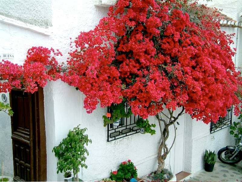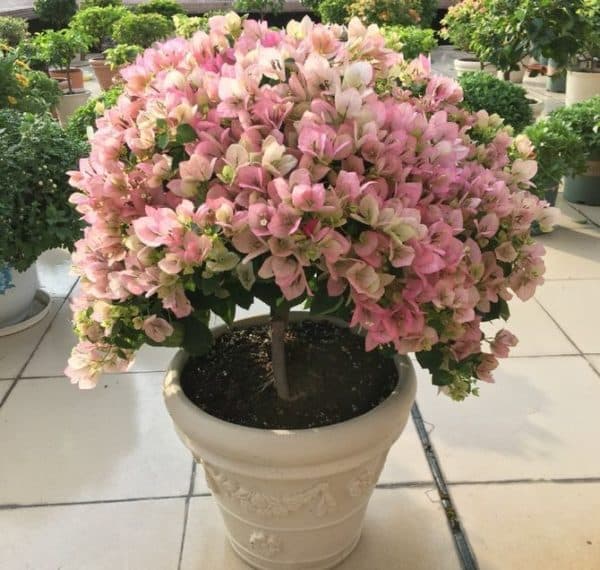 꽃이 만발한 부겐빌레아가 있는 화분은 옮겨서는 안 됩니다. 위치를 갑자기 바꾸면 꽃이 더 이상 피지 않을 뿐만 아니라 덤불이 완전히 드러나게 될 수도 있기 때문입니다.