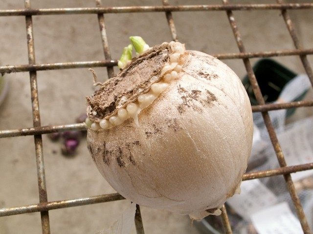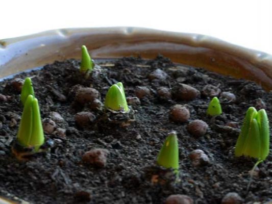 - 그 후 전구를 기질이 있는 화분에 거꾸로 심고 시원한 곳에 두어야 합니다.