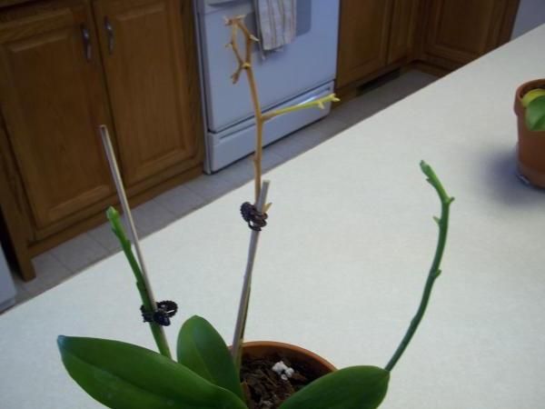 꽃줄기가 계속 자랄지 여부를 확인하려면 꽃봉오리처럼 생긴 끝부분을 주의 깊게 살펴보세요. 새순은 꽃줄기 끝부분에서 자랄 수 있지만, 꽃줄기가 녹색을 유지해야 가능합니다. 꽃줄기가 마르면 더 이상 자라지 않습니다. 꽃줄기는 꽃줄기 끝부분뿐만 아니라 다른 곳에서도 자랄 수 있습니다.