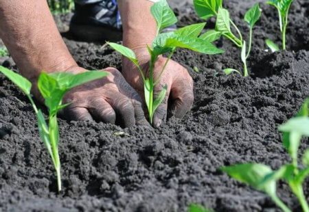 일반적으로 키가 작은 고추 품종은 융기된 화단에서 재배하지만, 사전에 적절한 지지대를 설치하는 것이 중요합니다. 구덩이에 따뜻하고 고인 물을 주어 흙이 수분을 약간 흡수하도록 합니다. 그런 다음 뿌리 목이 흙과 수평이 되도록 구덩이에 심습니다. 고추를 너무 깊이 심지 않는 것이 좋습니다. 화분에서 자랐던 높이에 심는 것이 가장 좋습니다.