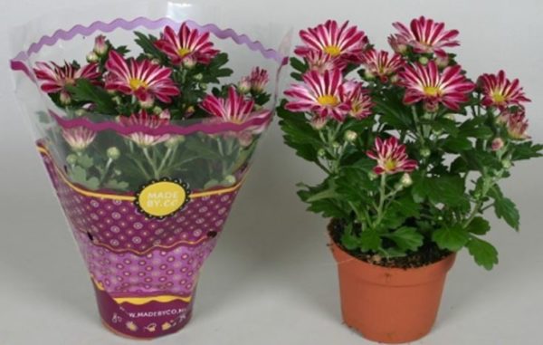 줄기와 잎을 가릴 정도로 꽃으로 뒤덮인 키 작은 관목입니다. 자라면서 꽃이 피는 구형을 형성합니다. 초보 정원사라도 집에서 이 화분 국화를 가꿀 수 있습니다. 구입 후 가지치기도 필요 없습니다.