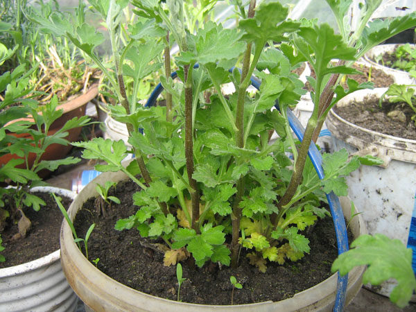 화분에 심은 국화를 구입하여 집에서 잘 뿌리를 내렸다면, 꽃이 진 후나 이른 봄에 잎이 세 개씩 달린 꺾꽂이를 하여 어린 모종을 키울 수 있습니다. 번식시키려면 아랫잎 아래와 윗잎 위를 비스듬히 자릅니다.-곧게 뻗어 있다. 잎은 반으로 잘려 있다.