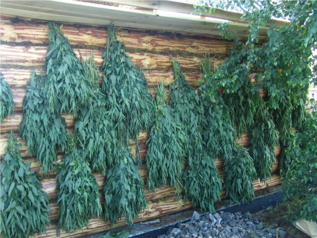 중요한 점이에요! 집 안의 창고나 캐노피 아래 그늘진 곳에, 묶는 사람들은 원재료를 한 겹으로 펼쳐 놓고 며칠 동안 말립니다. 그런 다음에야 줄기를 빗자루에 묶을 수 있습니다.