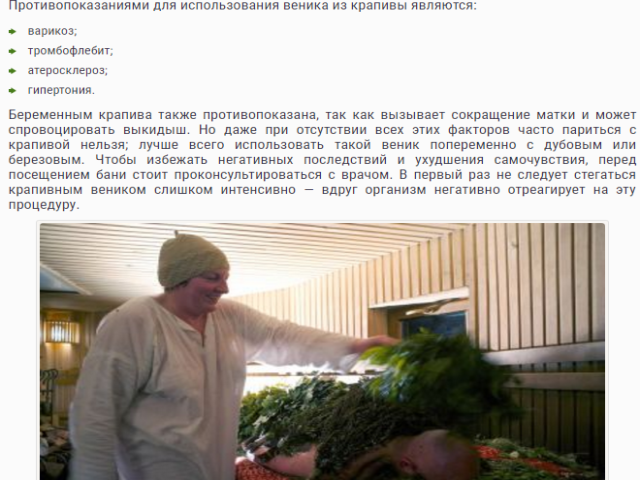 쐐기풀 목욕 거품은 수명이 짧아 한증막에서 한 번만 사용할 수 있지만, 뜨거운 증기를 즐기는 사람들은 겨울을 대비해 항상 쐐기풀 목욕 거품을 비축해 둡니다. 그들은 어떤 사람에게 뜨거운 증기 목욕을 권해야 할지, 반대로 어떤 사람에게는 위험을 감수해야 할지 잘 알고 있습니다.