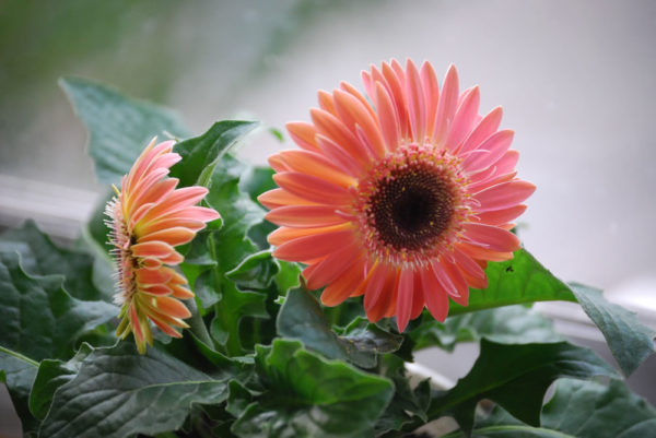 작은 꽃을 피우는 난쟁이 또는 미니 거베라 제임소니는 실내에서 재배됩니다. 이 품종은 많은 공간을 필요로 하지 않기 때문에 선택되었습니다. 이 꽃차례는 지름 8~15cm이고, 새순은 최대 25~30cm까지 자랍니다.