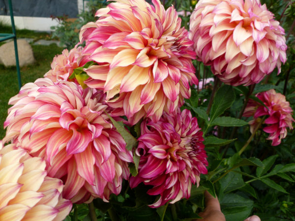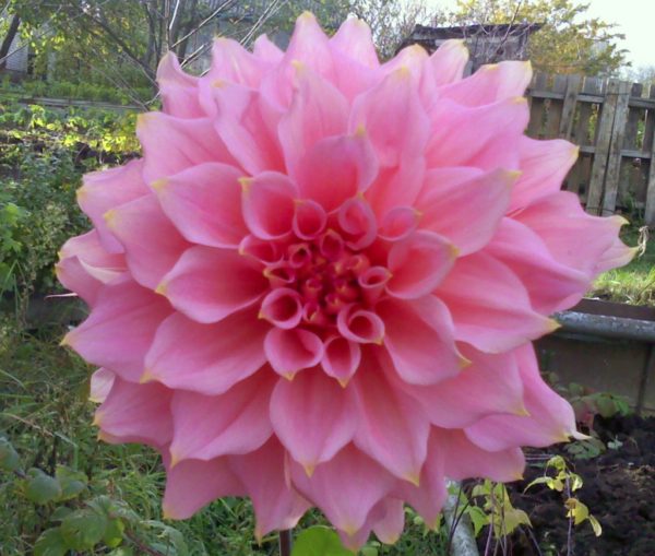 - 자이언츠 — 가장 큰 달리아 품종입니다. 꽃차례는 지름이 25cm에 달합니다. 꽃이 너무 커서 식물이 매우 무거워지기 때문에 바람으로부터 잘 보호되는 곳에 심습니다.
