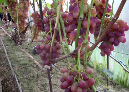 포도나무는 우리 기후에서 잘 익습니다. 내한성이 우수하며(영하 24°C까지), 흰가루병, 잿빛곰팡이병, 흰가루병(아래 사진 참조)에 매우 강합니다. 겨울 동안은 필름을 두 겹으로 덮어줍니다. 덩굴은 왕성하고 장식적입니다. 지베렐린을 계절에 두 번 정도 뿌려주면 송이가 잘 팔립니다.