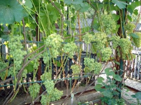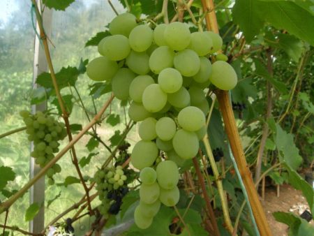 훌륭하고 수확량이 많은 품종입니다. 저희 다차에서 6년 정도 재배해 왔는데, 지금은 덤불이 아주 커졌습니다. 6단 나무 격자를 만들어 주었습니다. 가을에는 새순을 땅으로 구부려 가문비나무 가지로 잘 덮고, 봄에는 곧게 펴서 부채꼴 모양으로 지지대에 묶습니다. 송이는 매우 커서 무게가 600~700g, 때로는 그 이상입니다. 열매는 크고 다육하며 씨앗이 들어 있지만, 매우 달콤하고 즙이 많습니다. 특히 머스캣 향이 나지 않는다는 점이 마음에 듭니다.