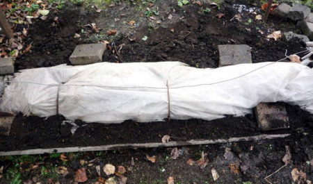 덮개 준비는 기온이 영하보다 높을 때 시작하지만 서리가 예상됩니다. 가장 적합한 시기는 11월이나 10월 말로 간주됩니다. 토양은 포도를 재배하다흙은 건조해야 합니다. 덮개를 덮을 예정일 2~3주 전에 물을 충분히 주고 완전히 마를 때까지 기다리세요. 흙 위에 톱밥이나 마른 나뭇잎을 깔아주세요. 멀칭 층은 수 센티미터 두께로 깔아주세요. 새싹은 톱밥과 나뭇잎으로 묻히고, 방수 코팅 처리된 방풍 단열재로 덮어주세요. 습기는 덮개를 씌운 포도나무에 해로울 수 있습니다. 습기는 포도나무를 썩게 하고 부패를 유발하기 때문입니다.