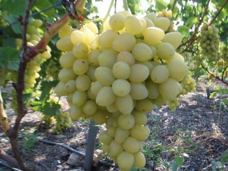 포도는 장방형이며 평균 무게는 18~20g입니다. 과육은 즙이 많고 균형 잡혀 있습니다. 풍미는 조화롭고 순수한 포도입니다. 따뜻하고 햇볕이 잘 드는 여름에는 한 송이의 무게가 최대 1.5kg까지 나갈 수 있습니다. 덩굴은 튼튼하고 왕성하여 40~50kg의 무게를 쉽게 감당할 수 있습니다. 수확은 8월 중순에 동시에 진행됩니다. 생장기는 115일 동안 지속됩니다.