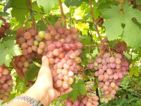포도는 익어가면서, 즉 색깔이 분홍색에 가까워질 때 수확합니다. 송이 전체를 따도 되며, 가지에서 쉽게 분리됩니다. 송이는 집에서 서늘한 곳에 최대 3~4주 동안 보관할 수 있습니다. 익은 포도는 냉장 보관 없이도 실온에서 최대 일주일까지 보관할 수 있습니다. 먹기 직전에 포도를 씻으세요. 포도를 보관할 계획이라면 씻지 마세요.