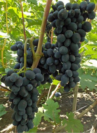 이 잡종 품종은 수확량이 좋습니다. 열매는 원뿔 모양이고 크며, 포도알 하나의 무게는 1,500g입니다. 말벌의 공격에 의한 피해는 없습니다.