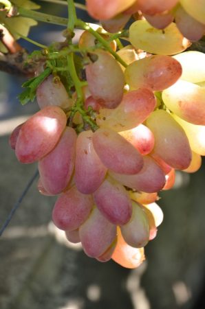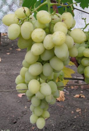 열매는 크고 황록색이며 둥글고 평균 무게는 7~12g입니다. 과육은 부드럽고 씨앗은 작으며 껍질은 거의 눈에 띄지 않습니다. 맛은 섬세하고 조화로우며 당도가 높습니다. 높은 습도에서도 열매가 갈라지지 않습니다. 말벌로부터 송이를 보호하기 위해 그물을 사용하는 것이 좋습니다.