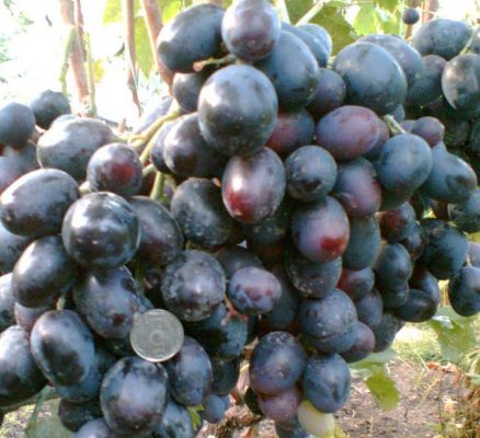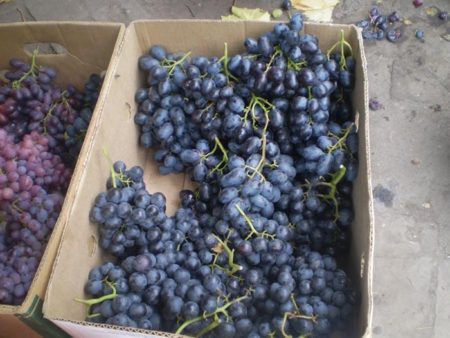 하지 무랏은 제 포도원에서 가장 큰 품종입니다. 열매는 거의 검은색에 아름답고, 모두가 그 맛을 좋아합니다. 완두콩만 한 크기의 열매가 맺히지 않고, 빽빽하게 송이를 맺으며, 물을 너무 많이 주는 것을 좋아하지 않습니다. 열매가 자주 터지기 때문에 물을 조절해야 하지만, 가뭄은 피해야 합니다. 이웃들은 모두 열매 크기에 놀라곤 합니다.