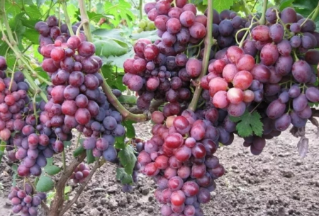 이 덤불은 아직 어려서 지난봄에 꺾꽂이로 심었습니다. 덩굴은 지난 시즌에 2미터 길이로 자랐고, 두께는 0.5mm가 조금 넘었습니다. 묘목은 중간 정도로 자랐습니다. 이번 봄에 줄기를 만들기 시작해서 세 송이를 남겨 두었습니다. 모양이 마음에 들었고, 완두콩만 한 열매는 없었습니다. 열매는 8월 15일에서 20일 사이에 익었습니다. 두 송이는 각각 300g이었고, 하나는 약 1000g이었습니다. 열매의 무게는 10~12g이었습니다. 덤불은 병충해가 없었고, 성장은 보통이었으며, 맛도 매우 만족스러웠습니다. 열매의 모양도 인상적이었습니다. 퓨린 색조가 섞인 자주색에 머스캣 향이 나는 맛이었습니다.