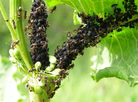 - 호그위드 해부된 품종은 진딧물 방제에 적합합니다. 잎이나 줄기 1kg당 끓는 물 10리터를 넣고 뚜껑을 덮은 채 10시간 동안 그대로 두세요. 즙을 내어 덤불을 처리하세요.