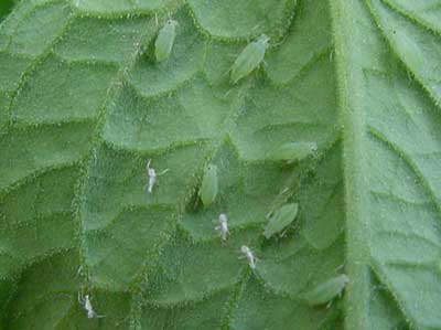진딧물은 잎 뒷면에서 발견되며, 성충과 많은 새로운 유충을 볼 수 있습니다. 진딧물 감염의 초기 징후는 다음과 같습니다.