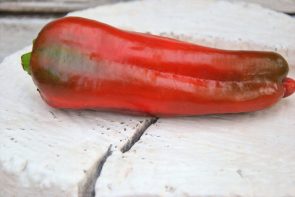불타는 듯한 색깔의 꼬투리는 크고 원통형이며 매끄럽고 약간 골이 있습니다. 꼬투리 안에는 씨앗이 4개 들어 있으며 무게는 약 110g입니다. 과육은 4~5mm로 얇습니다. 이 고추는 생으로 먹거나 다양한 요리에 활용하거나 겨울철 저장용으로도 사용할 수 있습니다. 조리하면 매콤한 맛이 더해집니다.