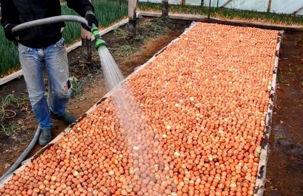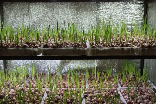 보호 토양에서는 일 년 내내 양파를 강제 재배할 수 있습니다. 이는 가정 재배와 가족 사업을 시작하기에 이상적입니다. 3주마다 밭 1제곱미터당 최대 5kg의 양파를 수확할 수 있습니다. 적절한 인력 관리, 선반 사용, 그리고 비료 공급을 통해 가능합니다.
