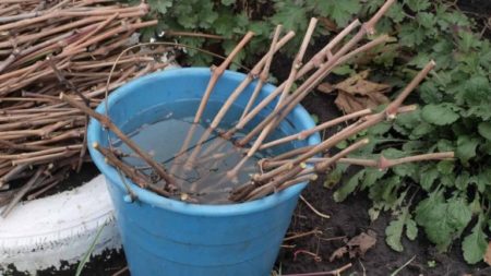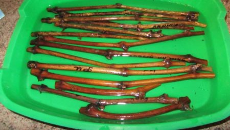 특정 품종의 특징을 가진 건강한 수풀을 선택하십시오. 꺾꽂이 길이는 눈의 개수에 따라 결정됩니다. 눈두덩이가 두세 개 있는 것이 가장 적합하지만, 눈두덩이가 한 개 또는 네 개 있는 순도 뿌리를 잘 내립니다.