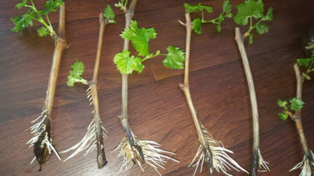 겨울을 잘 견뎌낸 포도 묘목은 빠르게 뿌리를 내립니다. 심기 전에 모든 묘목을 검사하고 병들거나 손상된 묘목은 제거하십시오.