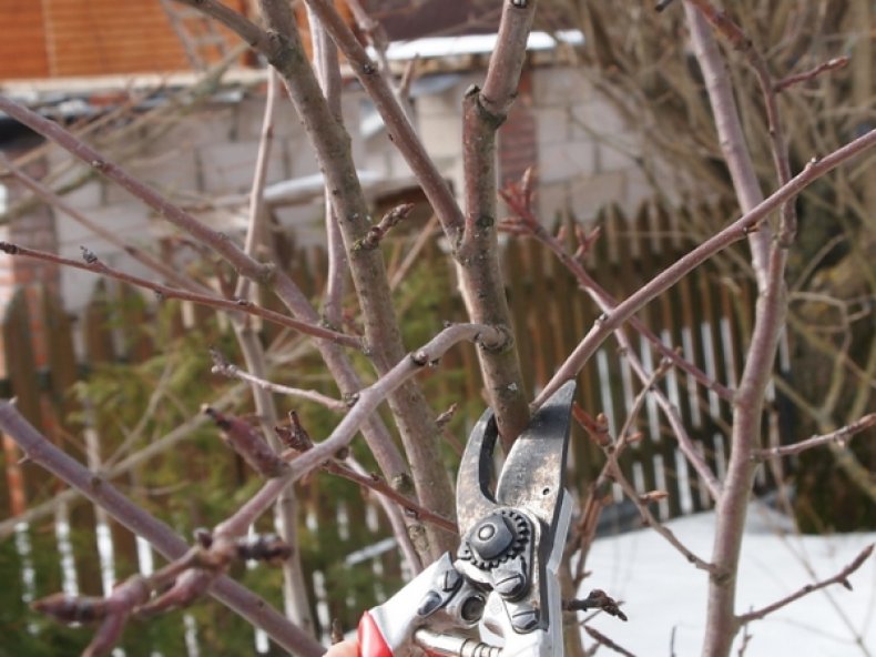 - 가지치기: 심은 후 아름다운 가지를 만들기 위해 묘목을 40cm 높이로 짧게 자릅니다. 이듬해에는 모든 새싹을 길이의 3분의 1 정도까지 가지치기하는데, 이때 먼저 3~5개의 뼈대 가지를 확인합니다. 그 후 매년 봄, 수액이 나오기 전에 위생 가지치기를 실시하여 안쪽으로 자라는 새싹과 손상되었거나 병들었거나 열매를 맺지 못한 새싹을 제거합니다.