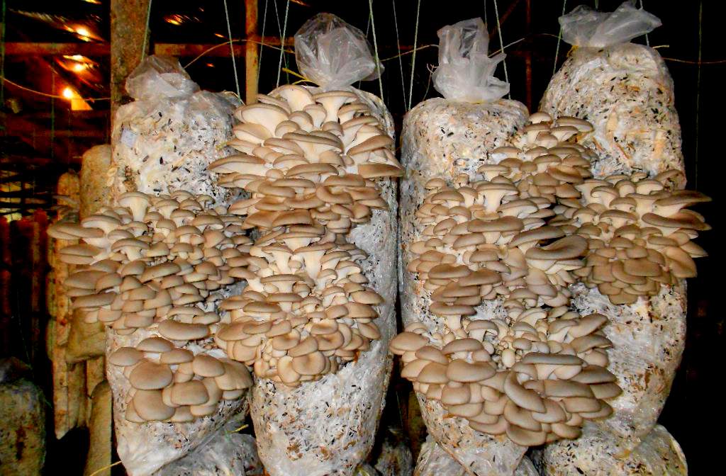 블록으로 버섯 재배 - 공기 습도는 최소 85%이어야 합니다. 이 수준을 유지하기 위해 작물에 끊임없이 관개하고, 건물 내에 가습기를 설치합니다.