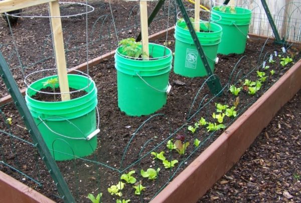 양동이에 담긴 흙은 온실이나 화단의 큰 용량보다 따뜻해지는 데 시간이 덜 걸립니다. 토마토는 야간 기온이 영하로 유지되는 5월에 개별 용기에 심어도 됩니다.