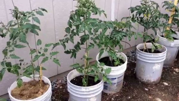 버킷 재배 방법은 식물을 이식하거나 다시 심는 것을 포함하지 않으므로 버킷당 토마토 묘목을 하나씩 심는 것이 좋습니다.