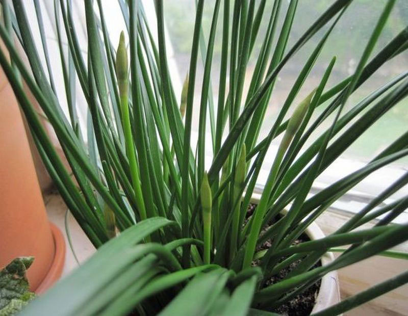 - 분리된 전구를 흙 혼합물에 심고 목은 표면에 남게 합니다.