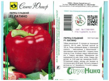 라티노 잡종은 조생종으로 최대 110일 만에 익습니다. 온실에서 격자를 지지대로 활용하여 재배하는 것이 가장 좋습니다. 줄기를 두 개로 나누어 심으면 훌륭한 결과를 얻을 수 있습니다. 수풀은 높이 100~110cm까지 자라지만, 매우 촘촘합니다. 정육면체 모양의 열매는 과즙이 풍부하여 무게는 최대 180~200g입니다. 정육면체의 길이는 최대 15cm이며, 색깔은 진하고 밝은 붉은색입니다.