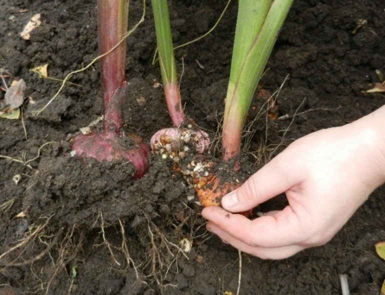 그 후에는 작은 덩이줄기와 큰 덩이줄기를 분리하여 덤불을 분류하는 것이 좋습니다. 뿌리가 작을수록 더 빨리 마르기 때문입니다. 흙에서 꺼낸 꽃은 모두 화분에 모아서 심어야 합니다.