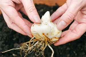 다음 내용에 관심이 있으실 수도 있습니다.구근을 물로 헹군 후 서늘하고 어두운 곳에 두어 말립니다. 보관하기 전에 각 구근에 썩음이나 질병의 징후가 있는지 검사합니다. 약 24시간 동안 건조시킨 후, 살균제 분말을 처리하고 종이봉투에 넣거나 신문지로 감쌉니다. 준비된 재료는 통풍을 위해 구멍이 뚫린 골판지 상자에 보관합니다. 각 구근에는 톱밥이나 이끼를 깔아줍니다. 보관 장소는 지하실, 차고 또는 발코니 중 선택할 수 있습니다.