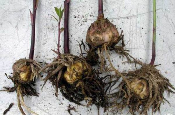 서리가 내리면 구근을 파냅니다. 먼저 줄기를 땅에서 약 5cm 정도 남겨두고 잘라냅니다. 그런 다음 뿌리가 다치지 않도록 쇠스랑으로 원형 구멍을 냅니다. 그런 다음 구근을 흙에서 조심스럽게 꺼냅니다.