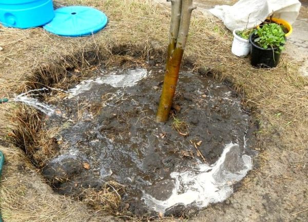 이상적인 옵션은 조합입니다 가을 먹이주기 물을 주면 영양분이 뿌리에 훨씬 빨리 도달합니다. 가을에는 칼륨-인 용액(과인산이수소나트륨 2큰술과 황산칼륨 1큰술을 물 10리터에 희석하여 사용하세요.)을 사용하세요. 나무가 10년 미만이면 각 칸에 영양액 10리터를 붓습니다. 오래된 나무는 양을 두 배로 합니다.