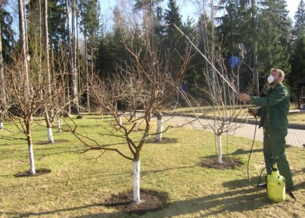 눈에 보이는 해충을 모두 제거한 후, 사과나무에 3% 황산구리(철) 용액을 뿌립니다(제품 300g을 물 10리터에 첨가).