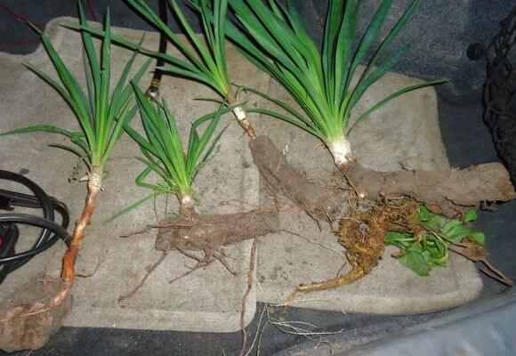 여름에는 유카 식물의 아랫부분에 뿌리 흡반이 나타납니다. 이 흡반을 모식물에서 분리하면 식물을 건강하고 튼튼하게 유지하는 데 도움이 될 뿐만 아니라 유카 식물을 번식시키는 데에도 사용할 수 있습니다. 흡반은 가을에 식물에서 분리합니다. 잘라낸 부분에는 유황을 뿌려줍니다.