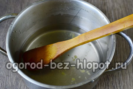 이제 소금물을 준비합니다. 물 1000ml를 붓고, 천연 꿀 한 큰술(더 넣어도 되지만 소금물의 맛을 보세요), 소금 한 작은술, 그리고 끓으면 식초 두 큰술을 넣습니다. 모든 재료가 완전히 녹을 때까지 끓입니다.