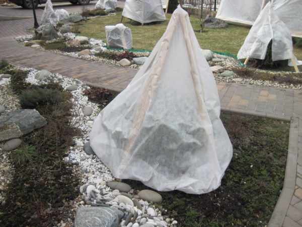 지역에 겨울 해빙이 자주 발생하는 경우, 덮개 아래 묘목은 몇 배 더 뜨거워지므로 환기가 필수적입니다. 이를 위해 젖은 눈을 치우고 덮개를 살짝 들어 올린 후 나무를 1~2시간 동안 그대로 두십시오. 그런 다음 덮개를 원래 위치로 다시 덮고 단단히 고정하십시오. 야간 기온의 급격한 하강으로 인한 손상을 방지하기 위해 낮에 환기하는 것이 가장 좋습니다.