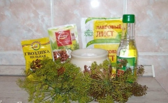 완성된 제품은 살균된 병에 나누어 담고, 각 병에 딜 가지 두 개를 넣습니다. 병을 밀봉한 후 식힌 후 지하 저장고로 옮깁니다.