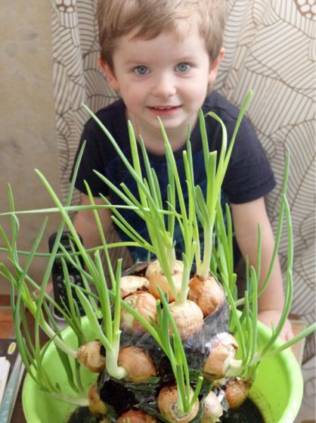 수확은 25~30일이면 됩니다. 매일 신선한 양파를 식탁에 올릴 수 있도록 용기 수와 심는 시기를 계산해 보세요. 3인 가족이라면 양파 5~6개면 충분합니다.