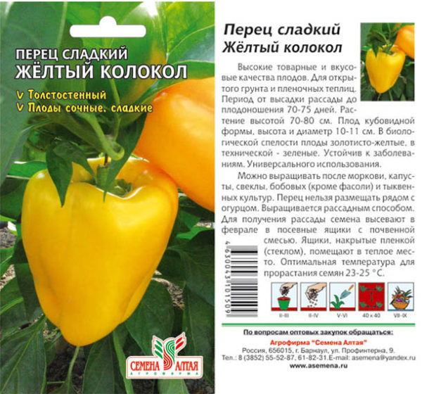 이 품종은 넓은 덤불과 적당한 잎을 가지고 있습니다. 수확량을 늘리려면 곁순과 아랫잎을 제거해야 합니다. 제거 후, 직사각형 볼록한 모양의 크고 밝은 노란색 열매가 맺힙니다. 훌륭하고 독특한 풍미와 적당한 단맛을 지닙니다. 이 품종은 중조생종으로, 첫 열매는 발아 후 115일 후에 익습니다. 열매는 길이 10~12cm, 평균 무게 150~250g입니다. 열매의 두께는 6~7mm로, 열매 크기에 따라 다릅니다. 이 품종은 모든 요리에 적합하며 남부 지역의 노지 재배에 적합합니다.